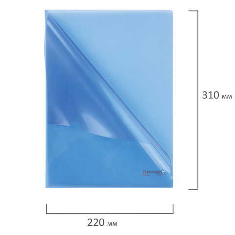 Папка-уголок жесткая BRAUBERG, синяя, 0,15 мм, 221642