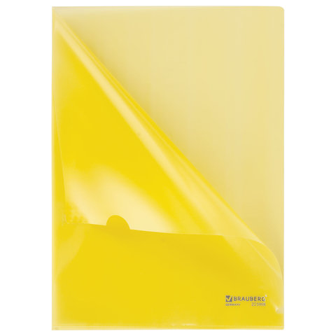 Папка-уголок жесткая BRAUBERG, желтая, 0,15 мм, 223968