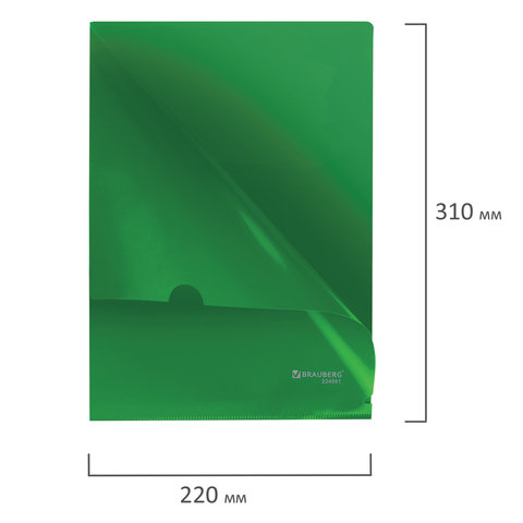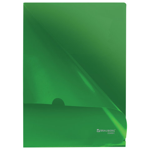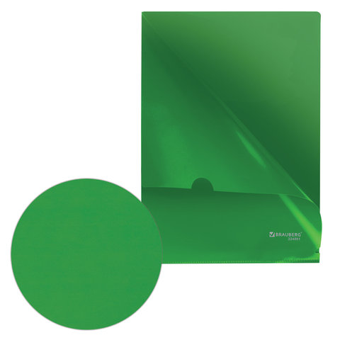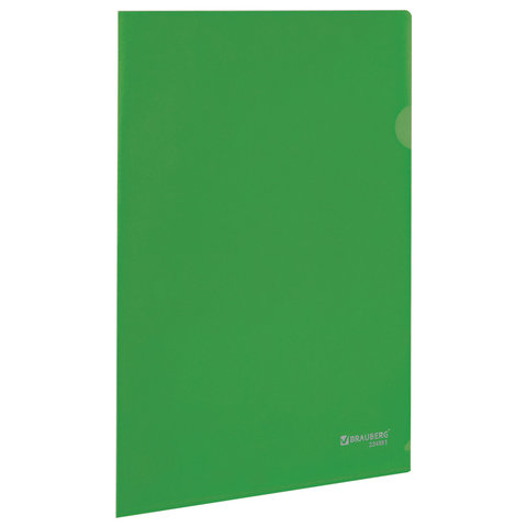 Папка-уголок жесткая, непрозрачная BRAUBERG, зеленая, 0,15 мм, 224881
