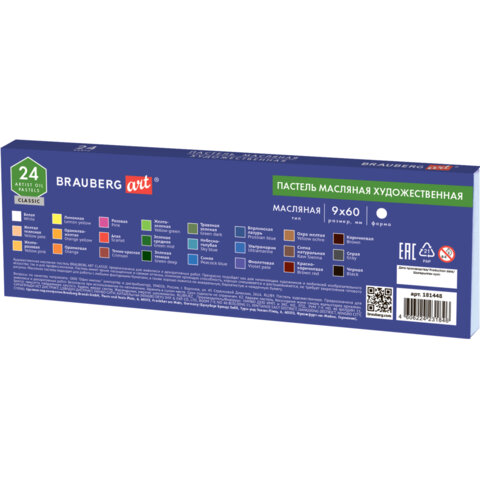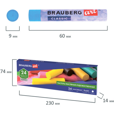 Пастель масляная художественная BRAUBERG ART CLASSIC, 24 цвета, круглое сечение, 181448