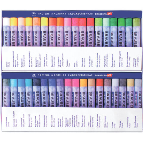 Пастель масляная художественная BRAUBERG ART CLASSIC, 36 цветов, круглое сечение, 181449