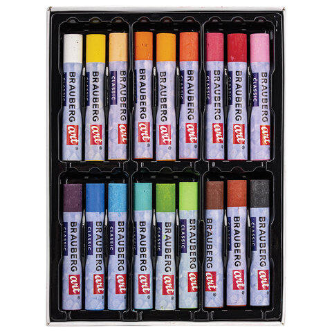 Пастель масляная художественная BRAUBERG ART CLASSIC, УТОЛЩЕННАЯ, 24 цвета, круглое сечение, 181452