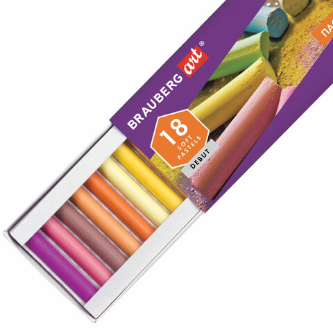 Пастель сухая художественная BRAUBERG ART DEBUT, 18 цветов, круглое сечение, 181460