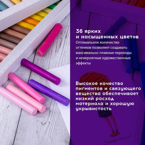 Пастель сухая художественная BRAUBERG ART DEBUT, 36 цветов, круглое сечение, 181461