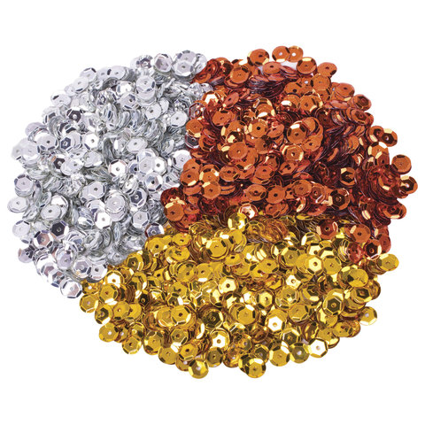 Пайетки для творчества "Классика", золото, серебро, медь, 6 мм, 30 грамм, ОСТРОВ СОКРОВИЩ, 661272