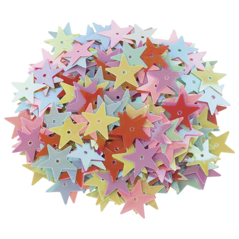 Пайетки для творчества "Звезды", яркие, цвет ассорти, 5 цветов, 15 мм, 20 грамм, ОСТРОВ СОКРОВИЩ, 661277