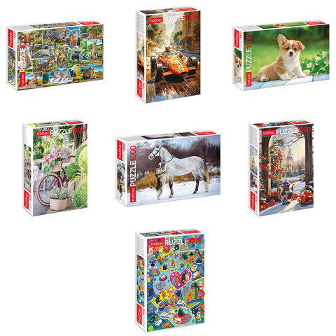 Пазл картонный 1000 элементов АССОРТИ, 10 дизайнов, 480х680 мм, HATBER