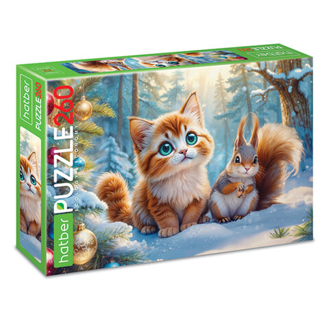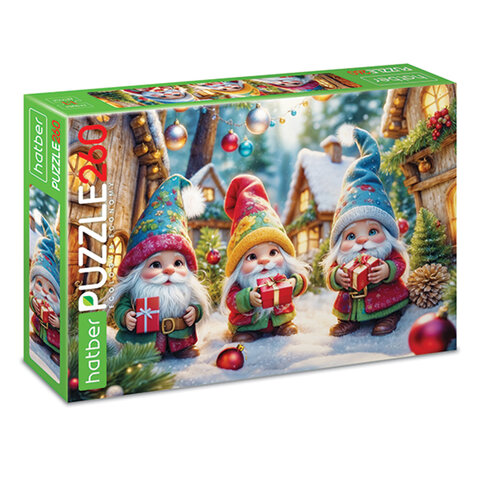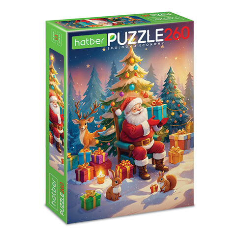 Пазл картонный НОВОГОДНИЙ 260 элементов АССОРТИ, 220х330 мм, HATBER