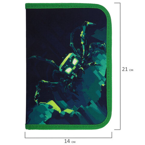 Пенал BRAUBERG, 1 отделение, 1 откидная планка, полиэстер, 21х14 см, "Ominous spider", 273525