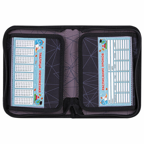Тканевый пенал BRAUBERG стандартного размера с одним отделением и двумя откидными планками. Удобная молния с трех сторон с металлическим бегунком, прочные резинки для предметов. Вмещает до 35 предметов.