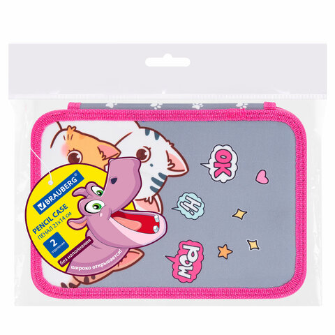 Пенал BRAUBERG, 2 отделения, полиэстер, 21х14 см, "Hi there", 273536