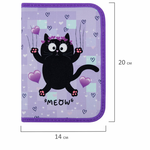 Пенал ПИФАГОР, 1 отделение, 2 откидные планки, полиэстер, 20х14 см, "Falling cat", 272287