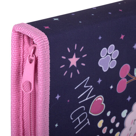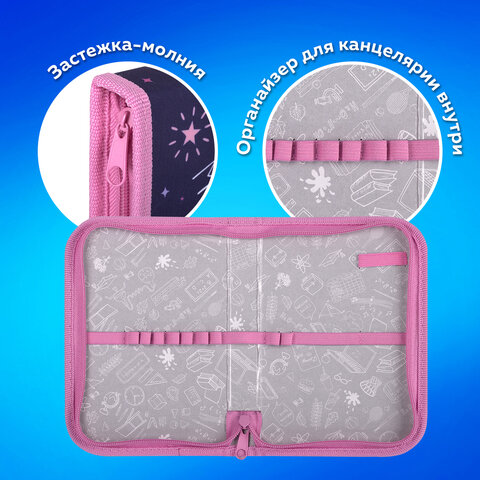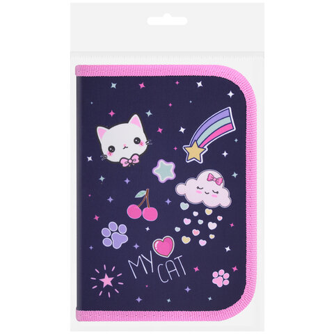Тканевый пенал ПИФАГОР размером 19х13 см с одним отделением. Удобная молния с металлическим бегунком с трёх сторон, прочные резинки для предметов. Вмещает до 14 предметов.