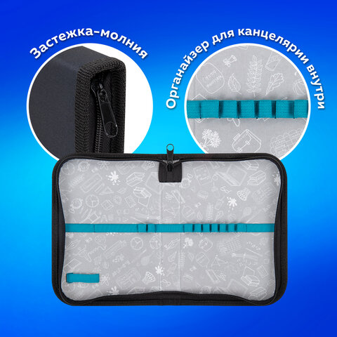 Тканевый пенал ПИФАГОР размером 19х13 см с одним отделением. Удобная молния с трех сторон с металлическим бегунком, прочные резинки для предметов. Вмещает до 14 предметов.