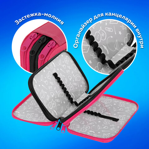 Пенал ПИФАГОР яркого дизайна с 3 отделениями выполнен из ламинированного картона и имеет тканевый торец. Удобные молнии с металлическими бегунками расположены с трёх сторон, а внутри предусмотрены прочные резинки для фиксации канцелярских принадлежностей.