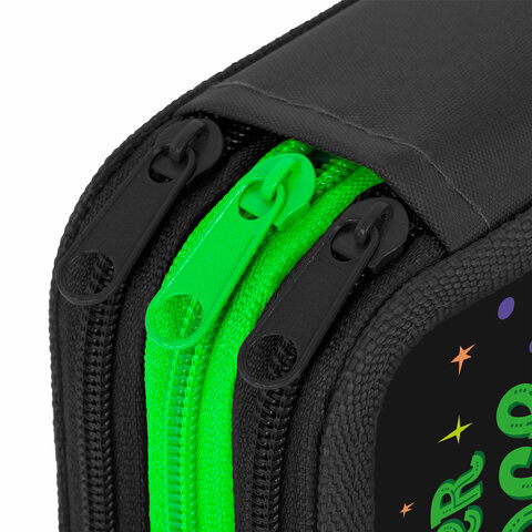 Пенал ПИФАГОР яркого дизайна с тремя отделениями выполнен из ламинированного картона, имеет тканевый торец. Оснащен удобными молниями с металлическими бегунками с трех сторон, а также прочными резинками для фиксации предметов. Вмещает до 42 предметов.