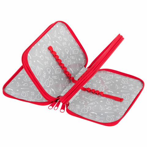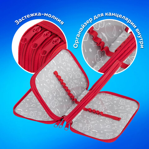 Пенал ПИФАГОР яркого дизайна с тремя отделениями выполнен из ламинированного картона, имеет тканевый торец. Оснащен удобными молниями с металлическими бегунками с трех сторон, а также прочными резинками для фиксации предметов. Вмещает до 42 предметов.