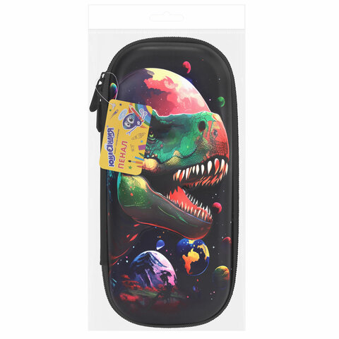 Пенал ЮНЛАНДИЯ, 1 отделение, 1 откидная планка, карман, EVA покрытие soft-touch, 22х10х5 см, "Galaxy Dino", 273188