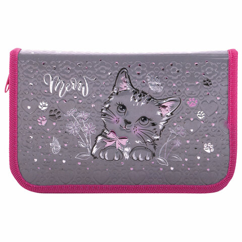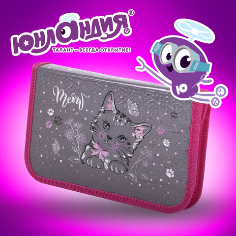 Пенал ЮНЛАНДИЯ, 1 отделение, металлизированный картон, конгрев, 19х11 см, "Meow", 271103
