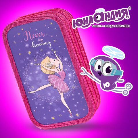 Пенал ЮНЛАНДИЯ, 2 отделения, ламинированный картон, 19х11 см, "Dancing girl", 270885