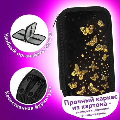 Пенал ЮНЛАНДИЯ, 2 отделения, ламинированный картон, конгрев, 19х11 см, "Golden", 273495