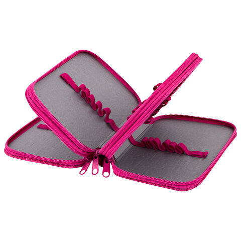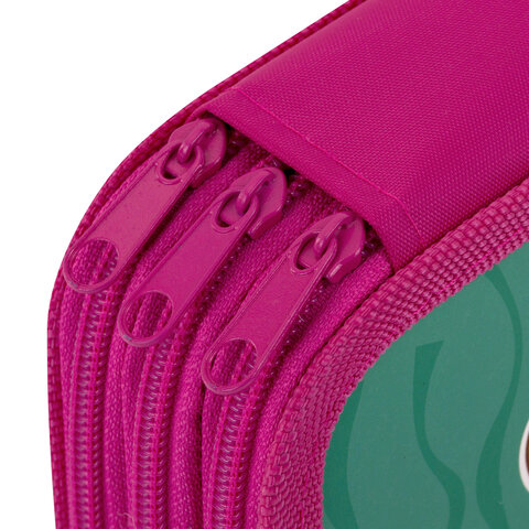 Пенал ЮНЛАНДИЯ стандартного размера с тремя отделениями. Выполнен из картона с эффектом soft-touch. Яркий дизайн. Удобная молния с металлическим бегунком с трех сторон, прочные резинки для канцелярских принадлежностей. Вмещает до 42 предметов.