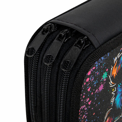 Пенал ЮНЛАНДИЯ стандартного размера с тремя отделениями, выполнен из картона с эффектом soft-touch. Яркий дизайн. Удобная молния с металлическим бегунком с трех сторон, прочные резинки для канцелярских принадлежностей. Вмещает до 42 предметов.