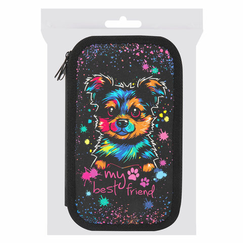 Пенал ЮНЛАНДИЯ, 3 отделения, картон с эффектом soft-touch, 19х11 см, "True friend", 272266