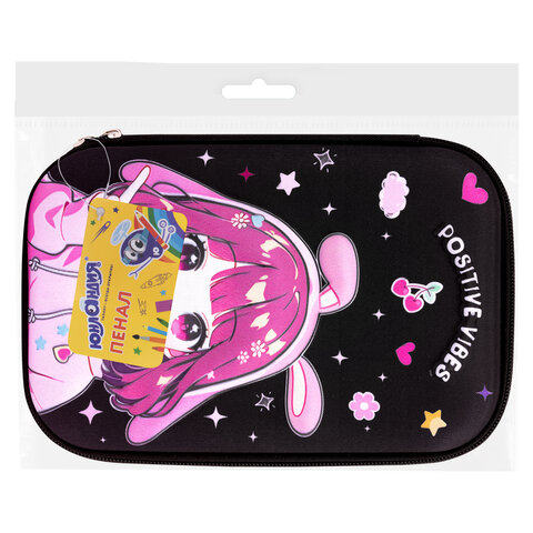 Пенал ЮНЛАНДИЯ большой, 1 отделение, 1 откидная планка, карман, полиэстер/EVA, 22х15х5 см, "Anime sign", 273194