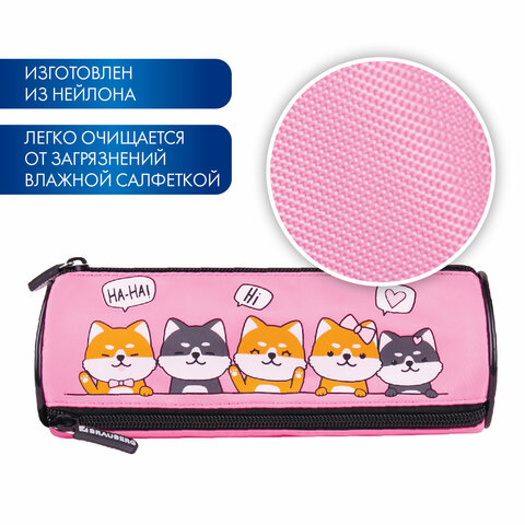 Пенал мягкий BRAUBERG, 3 отделения, нейлон, 21х7х7 см, "Puppies", 270839