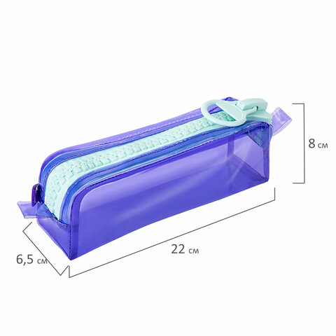 Пенал прямоугольной формы, выполнен из тонированного прозрачного ПВХ. Вмещает до 50 предметов стандартного размера.