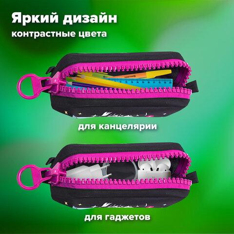 Пенал BRAUBERG с объемной "тракторной" молнией, 1 отделение, ткань, 22х8х6,5 см, "Anime girl", 271566