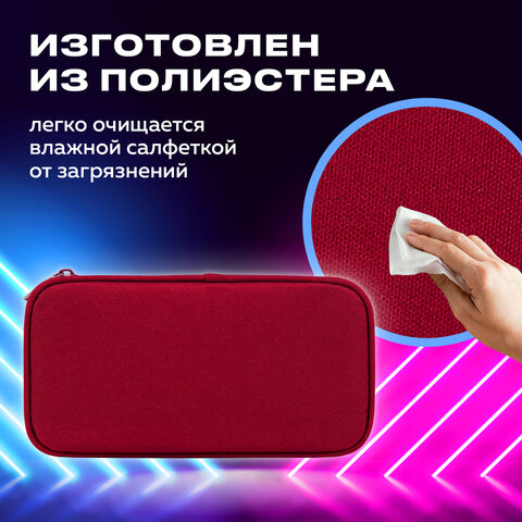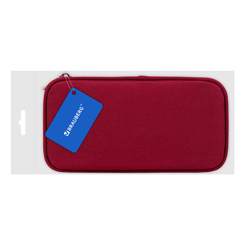 Пенал-косметичка BRAUBERG, 1 отделение, органайзер, полиэстер, 22x11,5x6 см, винный, 270845