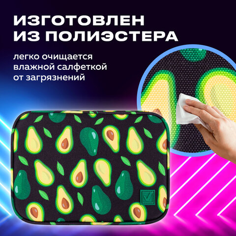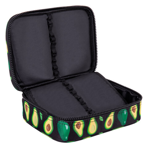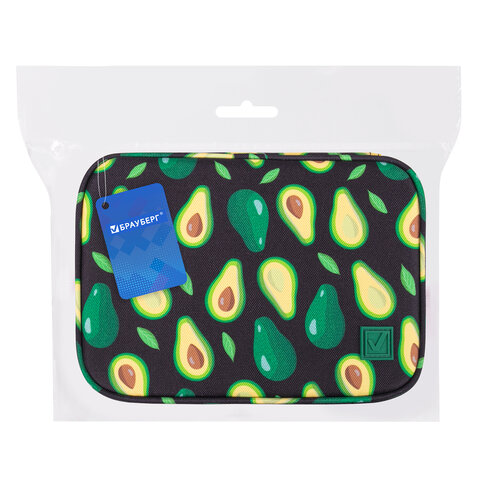 Пенал-косметичка BRAUBERG БОЛЬШОЙ, 1 отделение, 1 откидная планка, ткань, 21x15x6 см, "Avocado", 270706