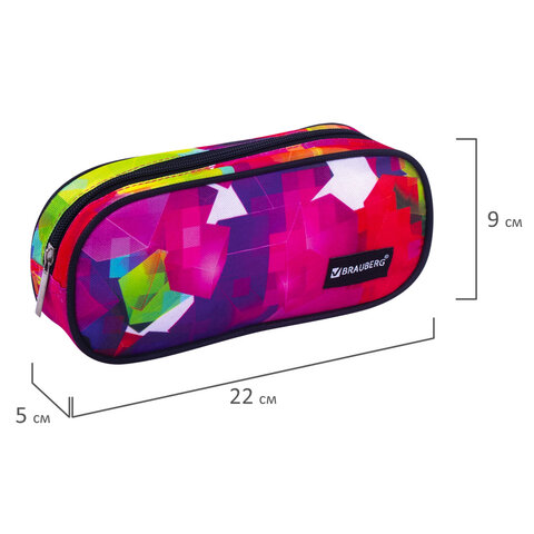 Пенал-косметичка BRAUBERG овальный, полиэстер, "Geometry", 22х9х5 см, 229272