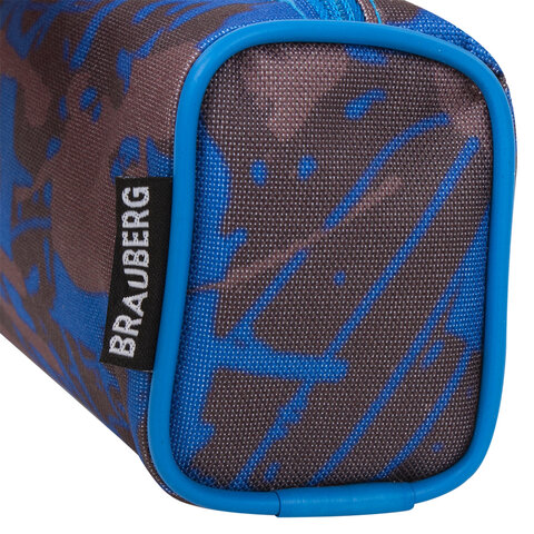 Пенал-косметичка BRAUBERG полиэстер, серый/голубой, "Элемент", 21х6х8 см, 223905