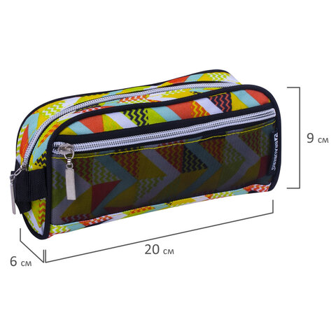 Пенал-косметичка BRAUBERG с ручкой, карман из сетки, полиэстер, "Citrus", 20х6х9 см, 229274