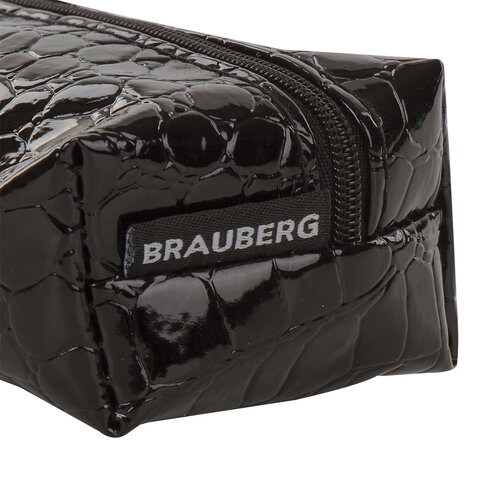Пенал-косметичка BRAUBERG "Ultra black", "крокодиловая кожа", 20х6х4 см, 223909