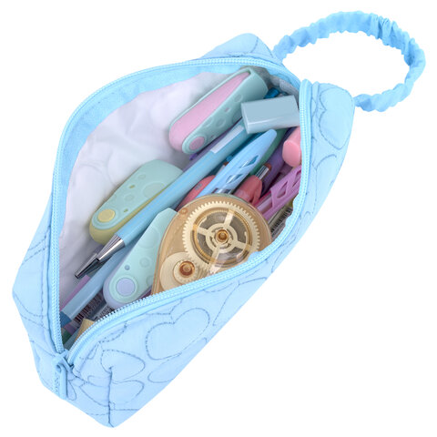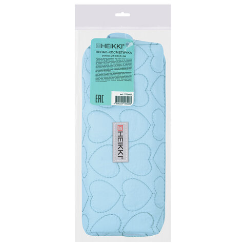 Пенал-косметичка HEIKKI (ХЕЙКИ) с ручкой, 1 отделение, стеганый полиэстер, 21х8х5 см, голубой, 273607