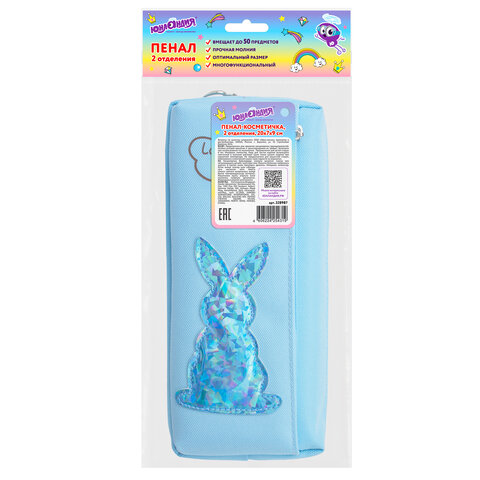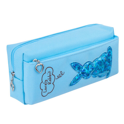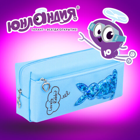 Пенал мягкий ЮНЛАНДИЯ, 2 отделения, полиэстер, "Bunny", голубой, 20х7х9 см, 228987