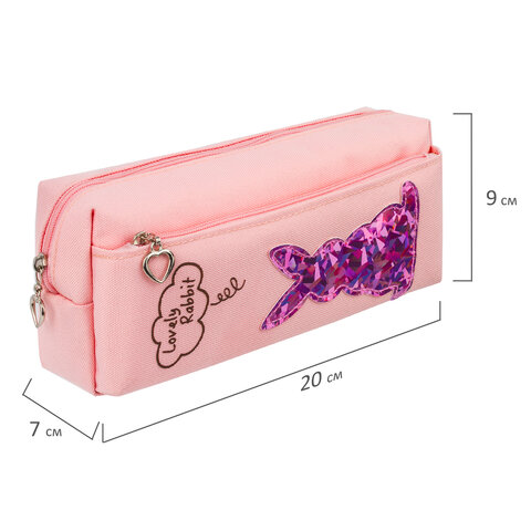 Пенал мягкий ЮНЛАНДИЯ, 2 отделения, полиэстер, "Bunny", розовый, 20х7х9 см, 228988