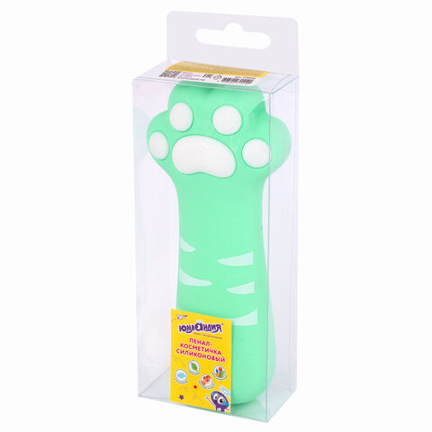 Пенал-косметичка ЮНЛАНДИЯ на молнии, силикон, "Paw Mint", мятный, 20х7 см, 270056