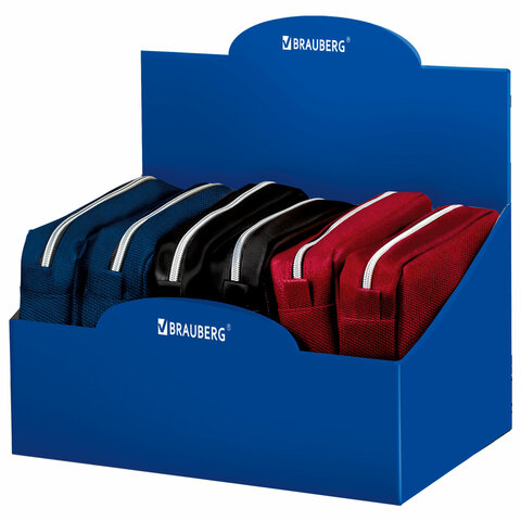 Пенал мягкий BRAUBERG, 2 отделения, ассорти 3 цвета, "Basic", 19х9х4 см, дисплей, 273611