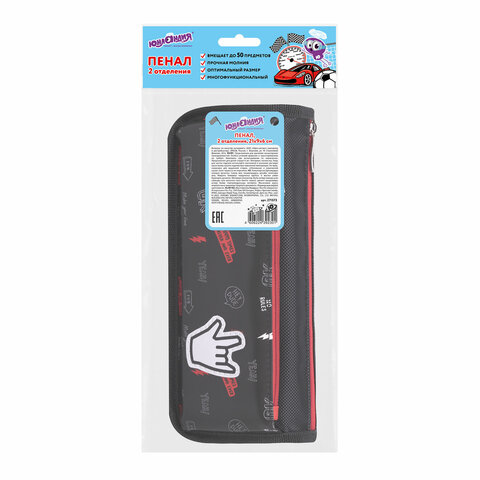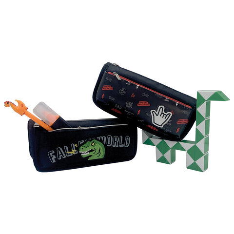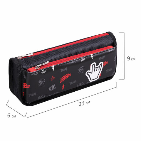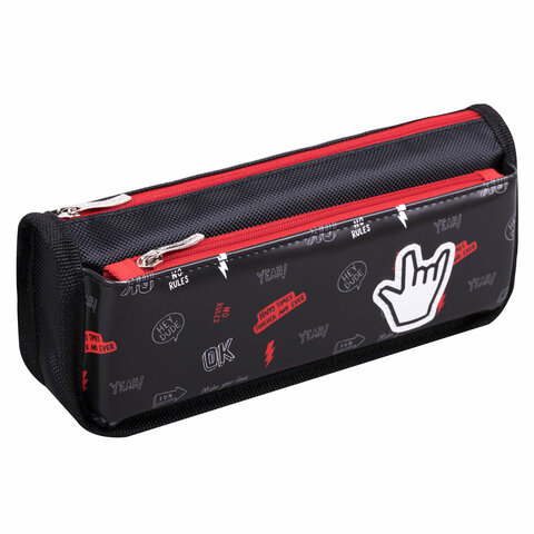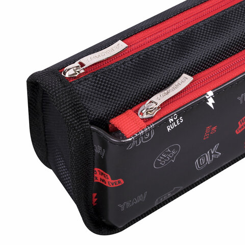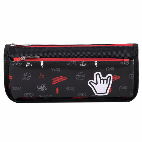 Пенал мягкий BRAUBERG, 2 отделения, полиэстер, "Cool vibes", черный, 21х9х6 см, 271573