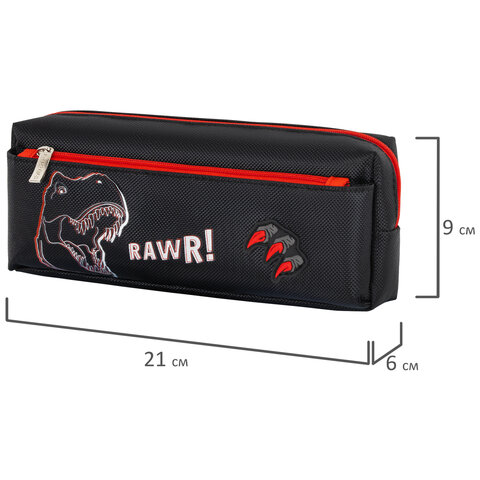 Пенал мягкий BRAUBERG, 2 отделения, полиэстер, "Roar", черный, 21х9х6 см, 272347
