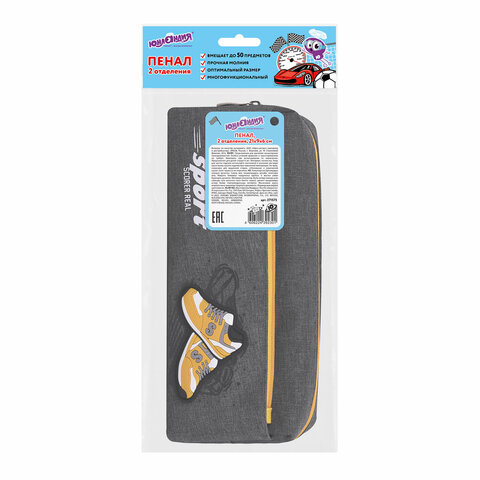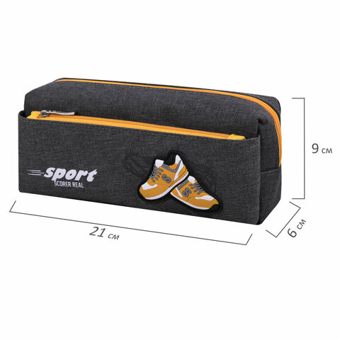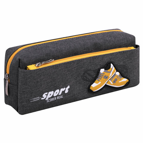 Пенал мягкий BRAUBERG, 2 отделения, полиэстер, "Sport scorer", серый, 20х9х6 см, 271575