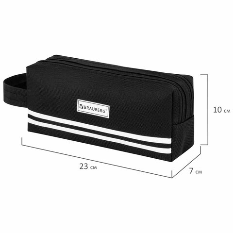 Пенал-органайзер BRAUBERG с ручкой, 2 отделения, полиэстер, 23x10 см, черный, 273592