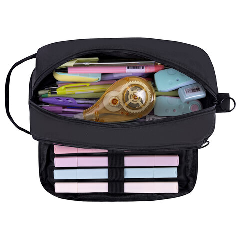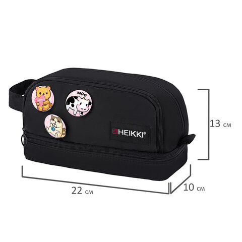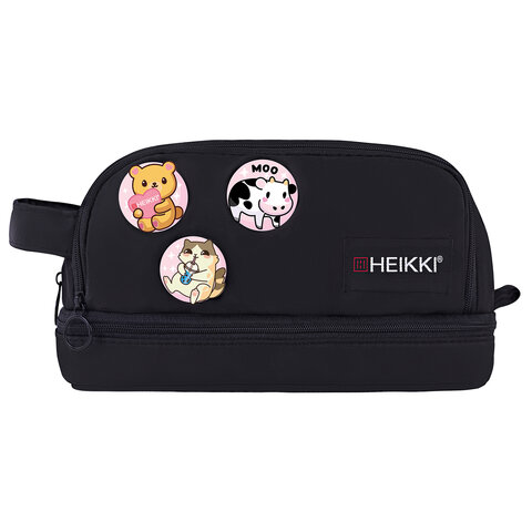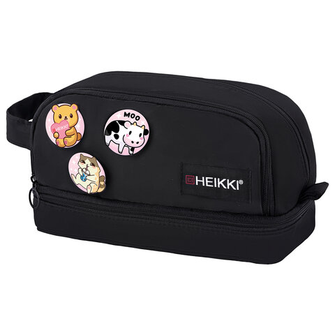 Пенал-органайзер HEIKKI (ХЕЙКИ) с ручкой, значки, 2 отделения, откидная планка, 22x13х10 см, черный, 273599