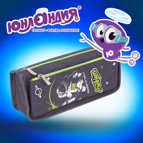 Пенал мягкий ЮНЛАНДИЯ, 2 отделения, полиэстер, "Cosmonaut", серый, 21х6х9 см, 270275