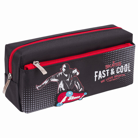 Пенал мягкий ЮНЛАНДИЯ, 2 отделения, полиэстер, "Skate", черный, 21х6х9 см, 270276